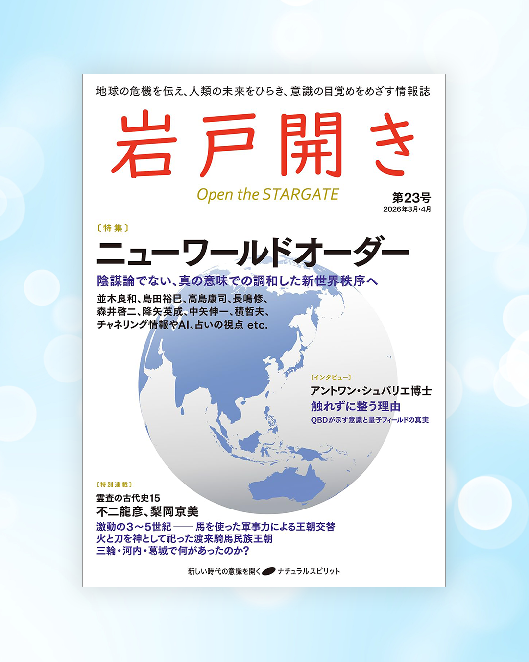 NEW! ニュース ニューワールドオーダー新世界秩序NWO陰謀論 特集:ニューワールドオーダー(新世界秩序)『岩戸開き』第23号が発売です! 2026年2月19日 AIと霊性― AIとどう共存していけばいいのか AIが人間の知性や感性に迫る時代、私たちは「魂」とは何か、「祈り」や「直感」はどこから生まれるのかを改めて問われています。 AIに「魂」はあるのでしょうか? 人工知能の進化は、霊性の世界とどのように響き合うのか。 哲学・宗教・科学の視点を通して、AIとの共存を探ります。 ...